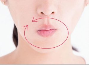 口の中で舌を、ほうれい線に沿うようにぐるっと一周させます。