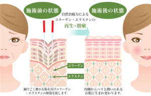 この再生過程でコラーゲンが作りだされ、鍼や弾力がアップしたるみにくいお肌になります。