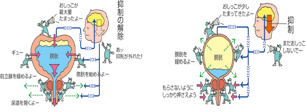 反対に尿道の筋肉は締まって尿が漏れるのを防ぎます。