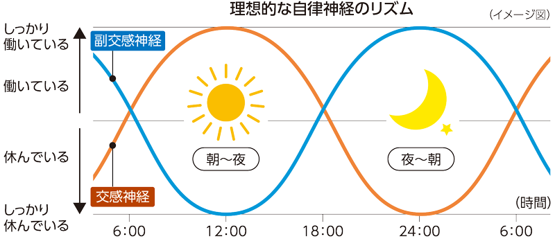 交感神経と副交感神経の働きは一日の中でリズムがあり、