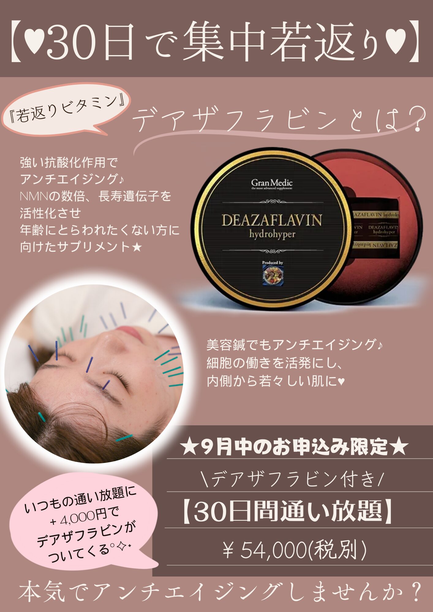 当院では9月限定で、美容鍼とデアザフラビンがセットになった